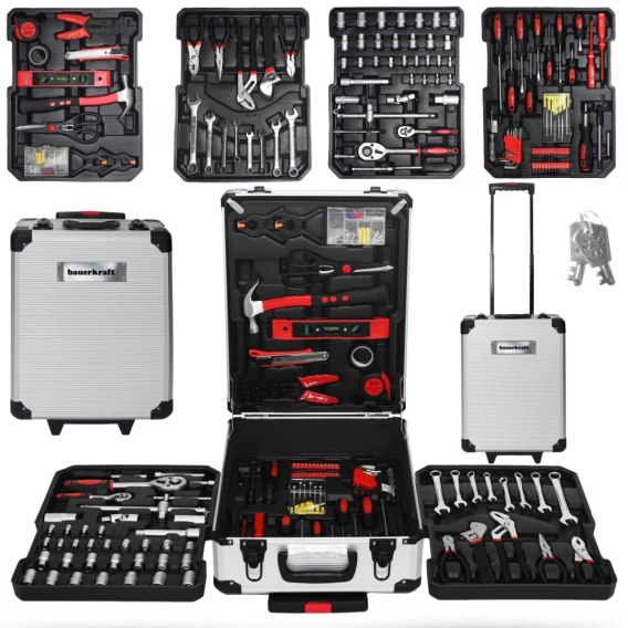 Zestaw narzędzi Bauerkraft w solidnej walizce to idealne wyposażenie każdego majsterkowicza. 189 elementów umożliwia sprawne wykonywanie prac naprawczych i montażowych w domu i warsztacie. Zestaw przyda się przy montażu mebli, naprawie roweru, wymianie gniazdka czy przygotowaniu instalacji. Walizka z dedykowanymi miejscami na każdy element zapewnia porządek i szybki dostęp do narzędzi. Stal węglowa i chromowo-wanadowa gwarantują trwałość, a gumowane uchwyty zwiększają komfort pracy.