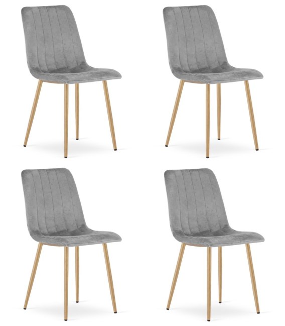 Krzesło LAVA - jasny szary aksamit / nogi kolor drewna x 4