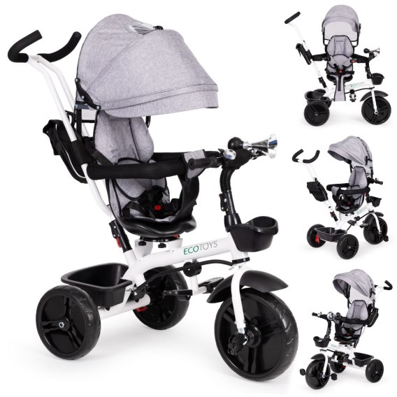 Rowerek trójkołowy obrotowy 360° szary z daszkiem ECOTOYS ECOTOYS
