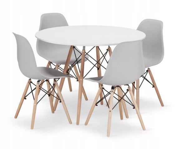 Zestaw stół okrągły TODI 100cm biały + 4 krzesła OSAKA szare