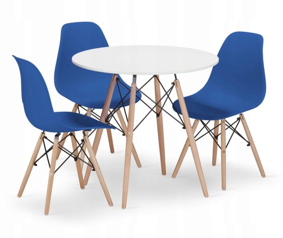 Zestaw stół okrągły TODI 80cm biały + 3 krzesła OSAKA niebieskie: