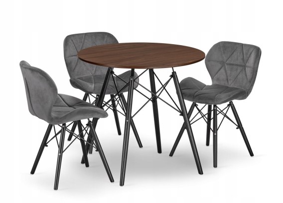 Zestaw stół okrągły TODI 80cm jesion + 3 krzesła LAGO szare: