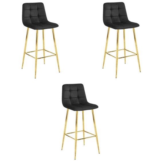 Hoker ARCETO - aksamit czarny / nogi ZŁOTE x 3