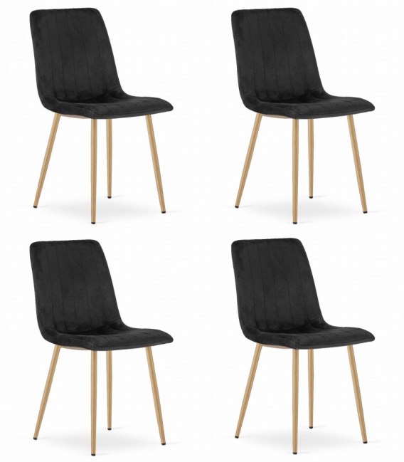 • Krzesło LAVA - czarny aksamit / nogi kolor drewna x 4