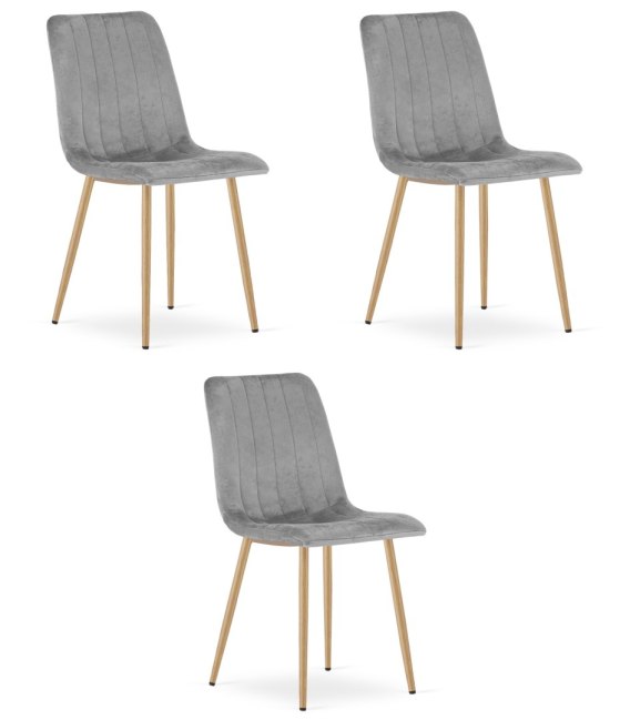 Krzesło LAVA - jasny szary aksamit / nogi kolor drewna x 3