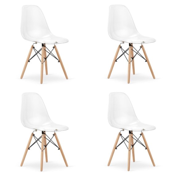 - krzesła są PRZEZROCZYSTE z nogami w kolorze NATURALNYM