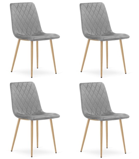 Krzesło TURIN - jasny szary aksamit / nogi kolor drewna x 4