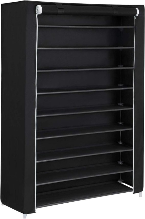 TEKSTYLNA SZAFA NA BUTY, CZARNA, 9 PÓŁEK
