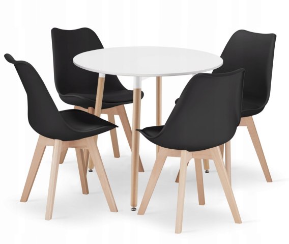 Zestaw stół okrągły KAMI 80cm biały + 4 krzesła MARK czarne: