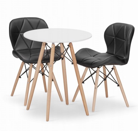 Zestaw stół okrągły TODI 60cm biały + 2 krzesła LAGO czarne