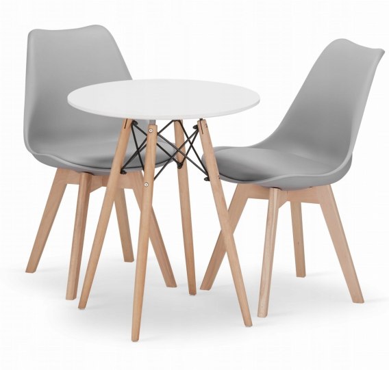 Zestaw stół okrągły TODI 80cm biały + 2 krzesła MARK szare