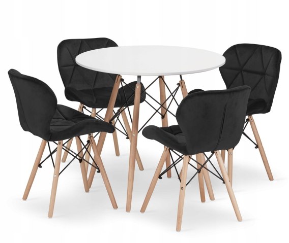 Zestaw stół okrągły TODI 80cm biały + 4 krzesła LAGO czarne